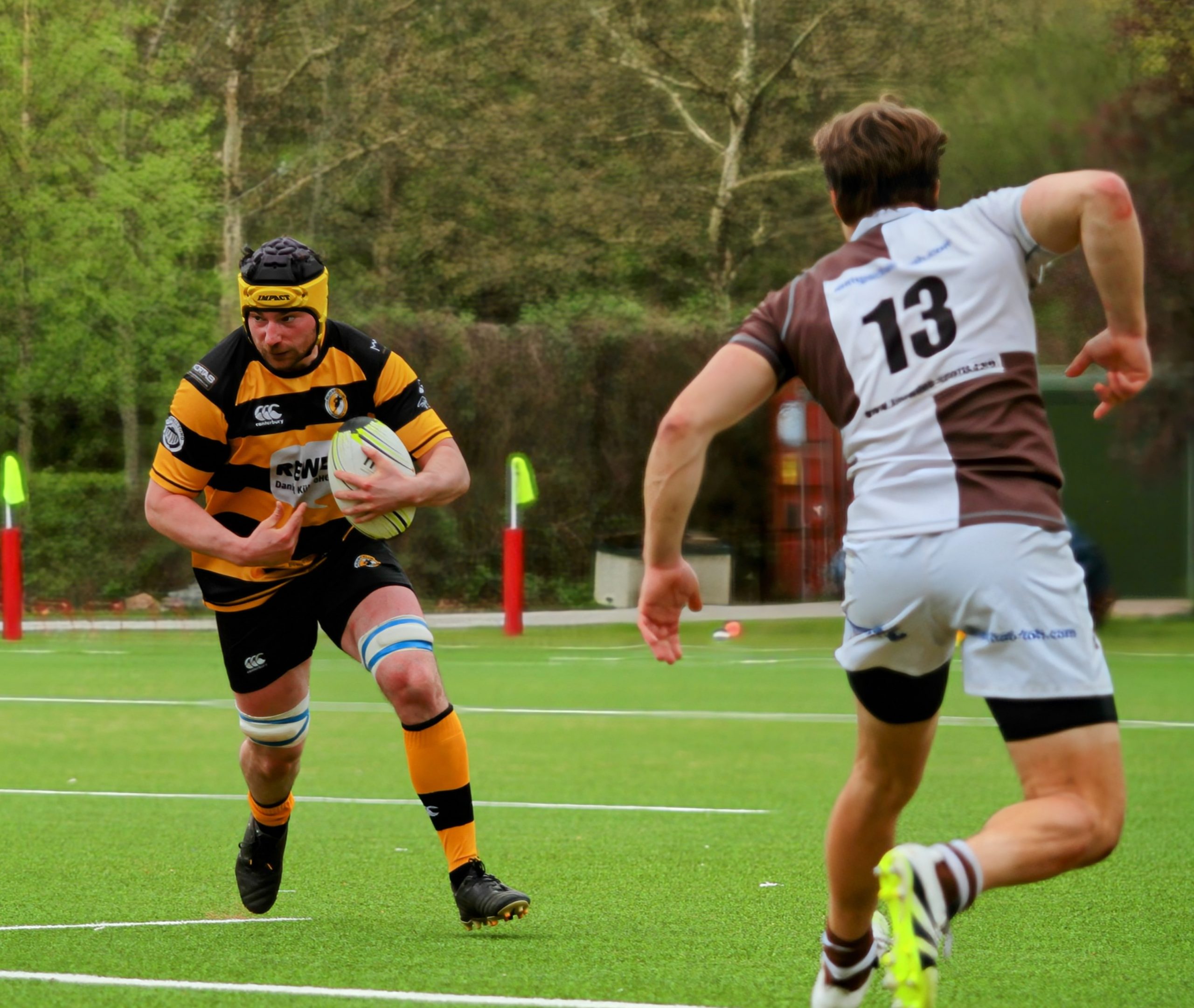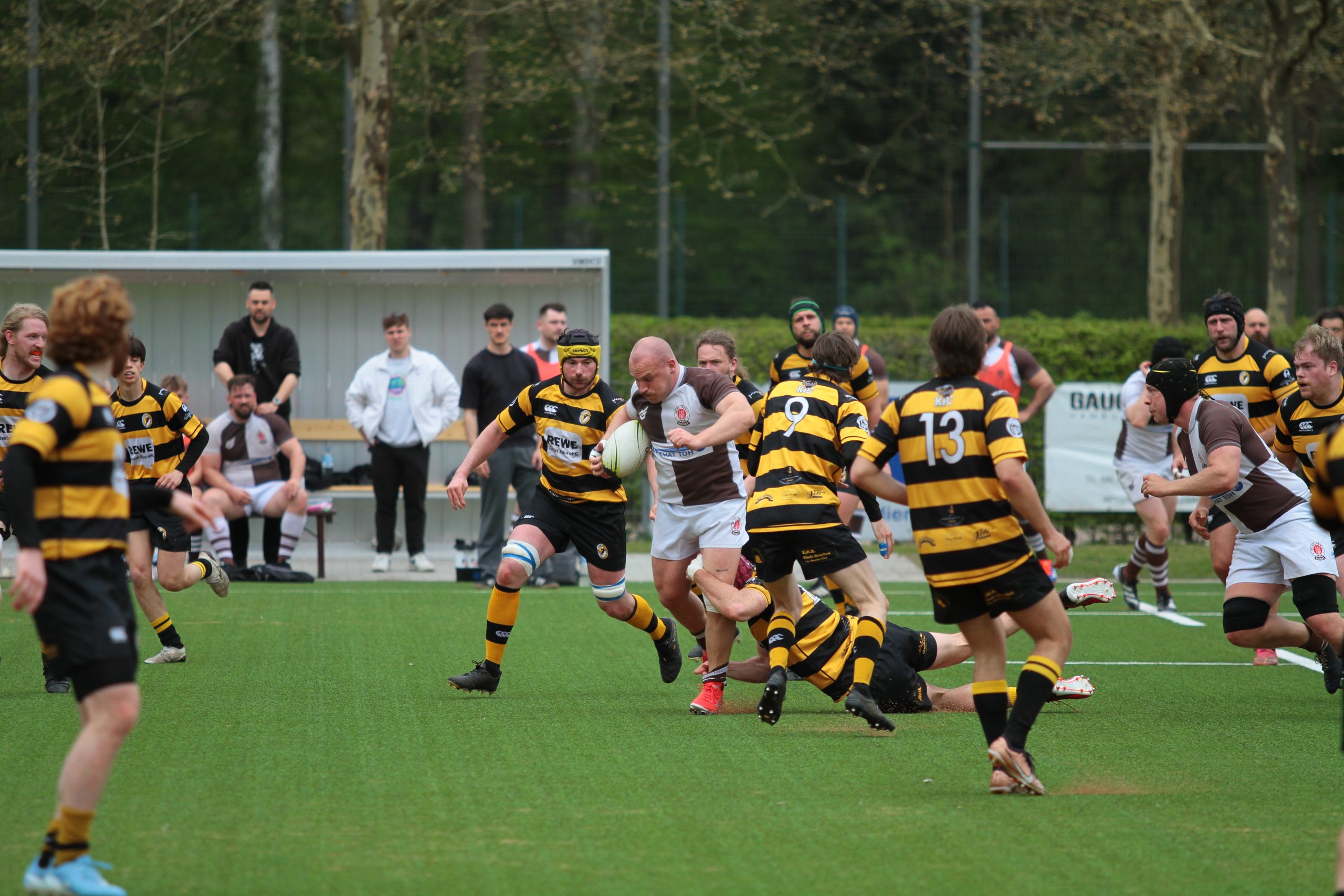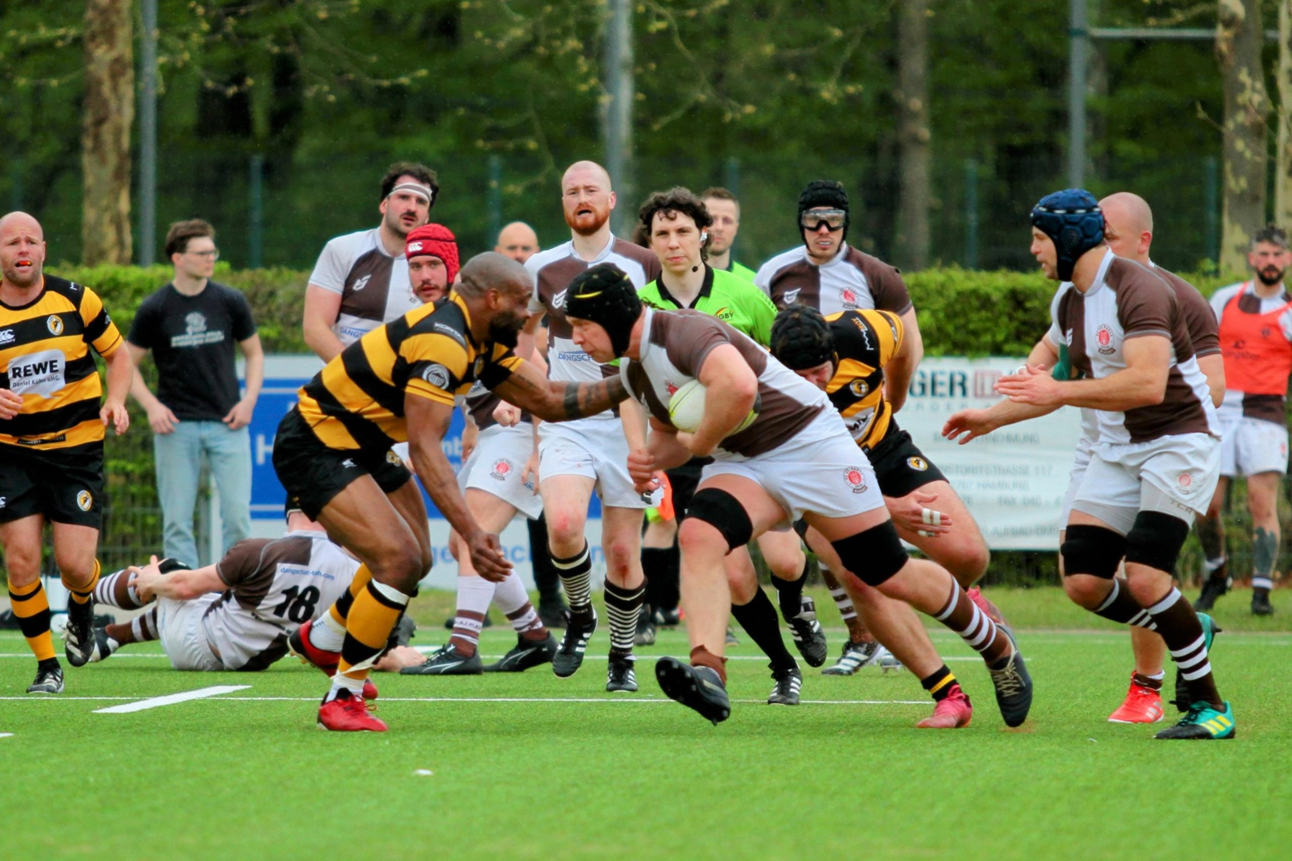 Die Gäste von Rugby Klub 03 Berlin hatten in der Anfangsphase zwar mehr Ballbesitz und wirkten etwas dominanter, konnten daraus jedoch keine Punkte erzielen. Unsere Jungs setzten immer wieder Nadelstiche. Die über ein sicheres Kickspiel von Tee, in Punkte umgewandelt werden konnten. Es entwickelte sich eine erste Halbzeit die von vielen Unterbrechungen durch kleinere Fehler und Handling Error auf beiden Seiten geprägt war.