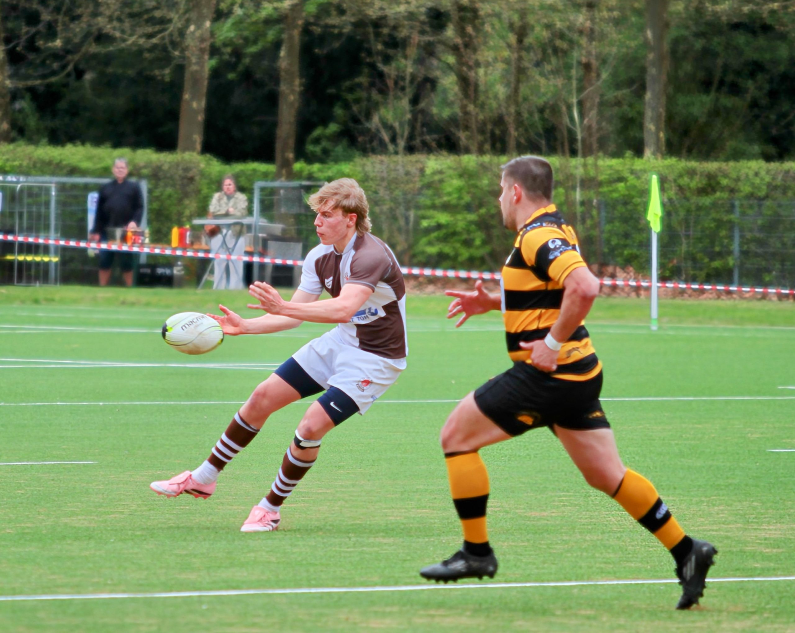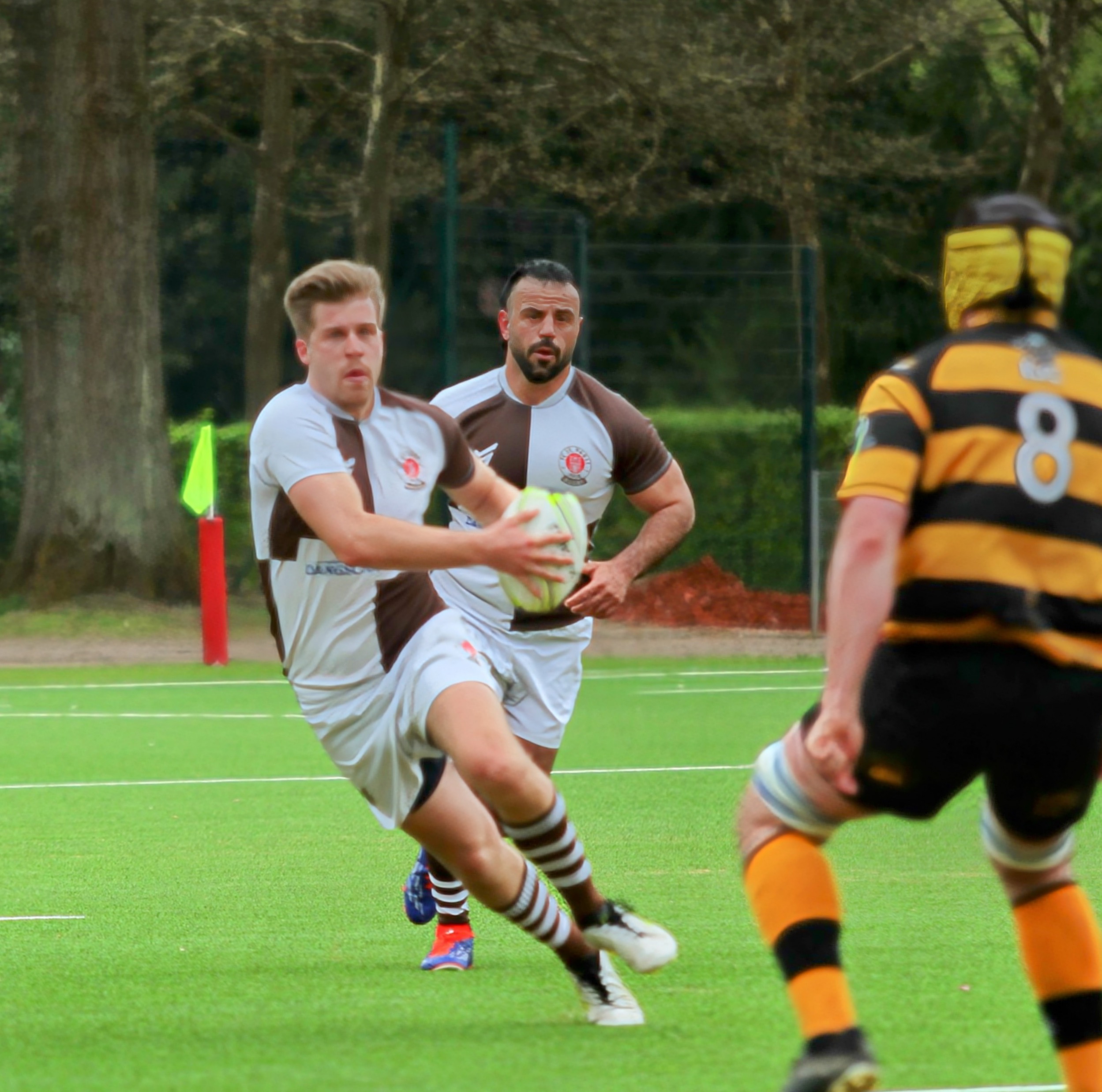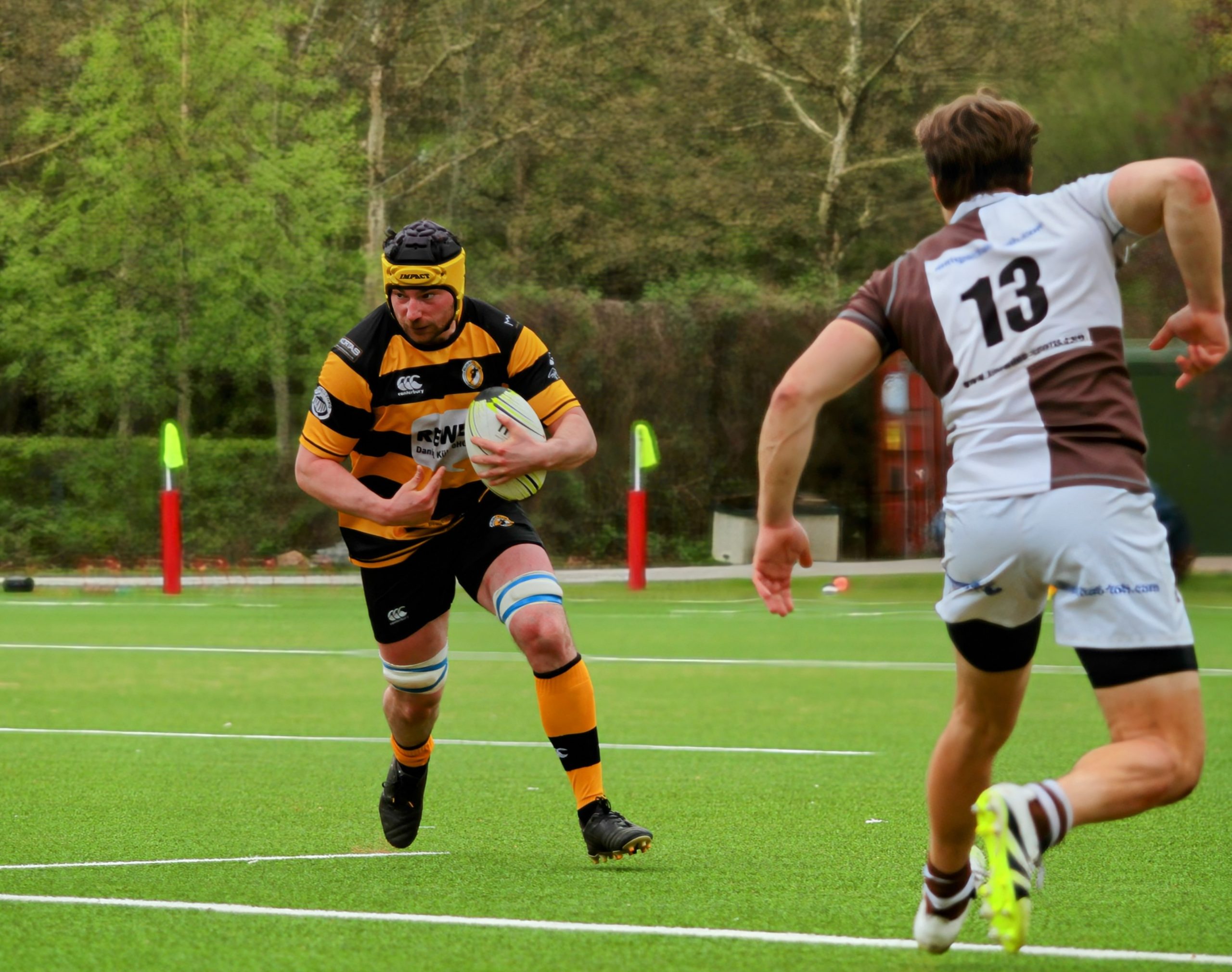 Die Gäste von Rugby Klub 03 Berlin hatten in der Anfangsphase zwar mehr Ballbesitz und wirkten etwas dominanter, konnten daraus jedoch keine Punkte erzielen. Unsere Jungs setzten immer wieder Nadelstiche. Die über ein sicheres Kickspiel von Tee, in Punkte umgewandelt werden konnten. Es entwickelte sich eine erste Halbzeit die von vielen Unterbrechungen durch kleinere Fehler und Handling Error auf beiden Seiten geprägt war.