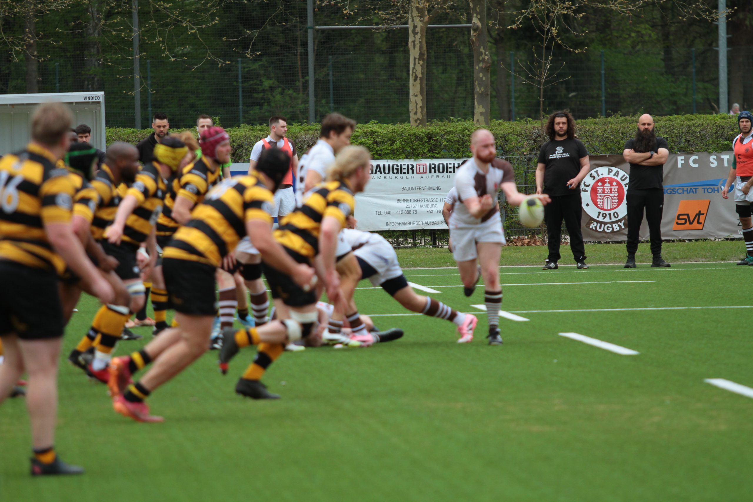 In der 66. Minute dann ein Rückschlag: St. Pauli musste nach einer Roten Karte in Unterzahl weiterspielen. Kurz darauf folgte eine weitere Karte, diesmal eine Gelbe, doppelte Unterzahl. Doch unsere Braun Weißen zeigten eine herausragende, geschlossene Verteidigungsleistung und ließen kaum etwas zu. Stattdessen gelang es sogar, per Straftritt auf 22:10 zu erhöhen.
