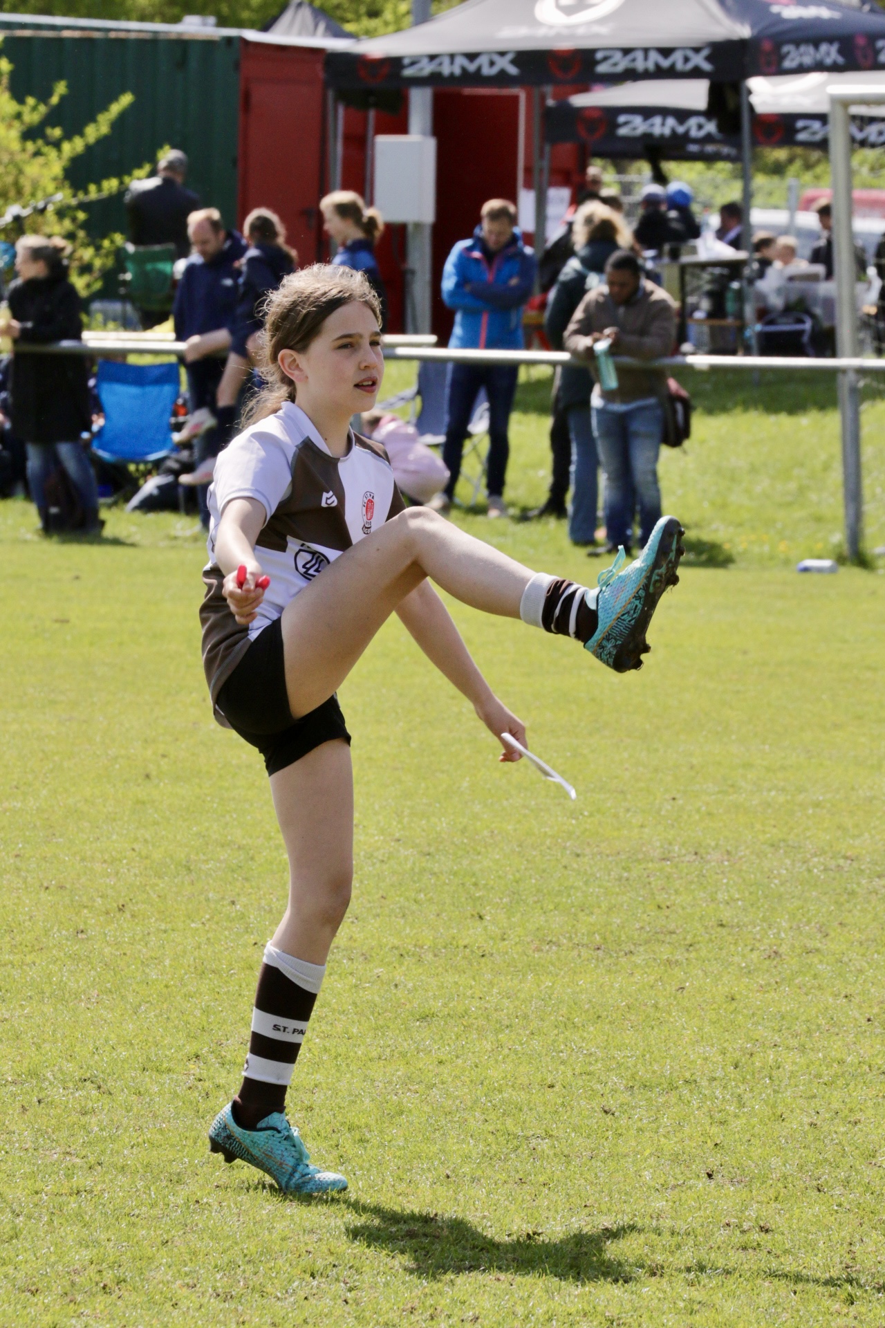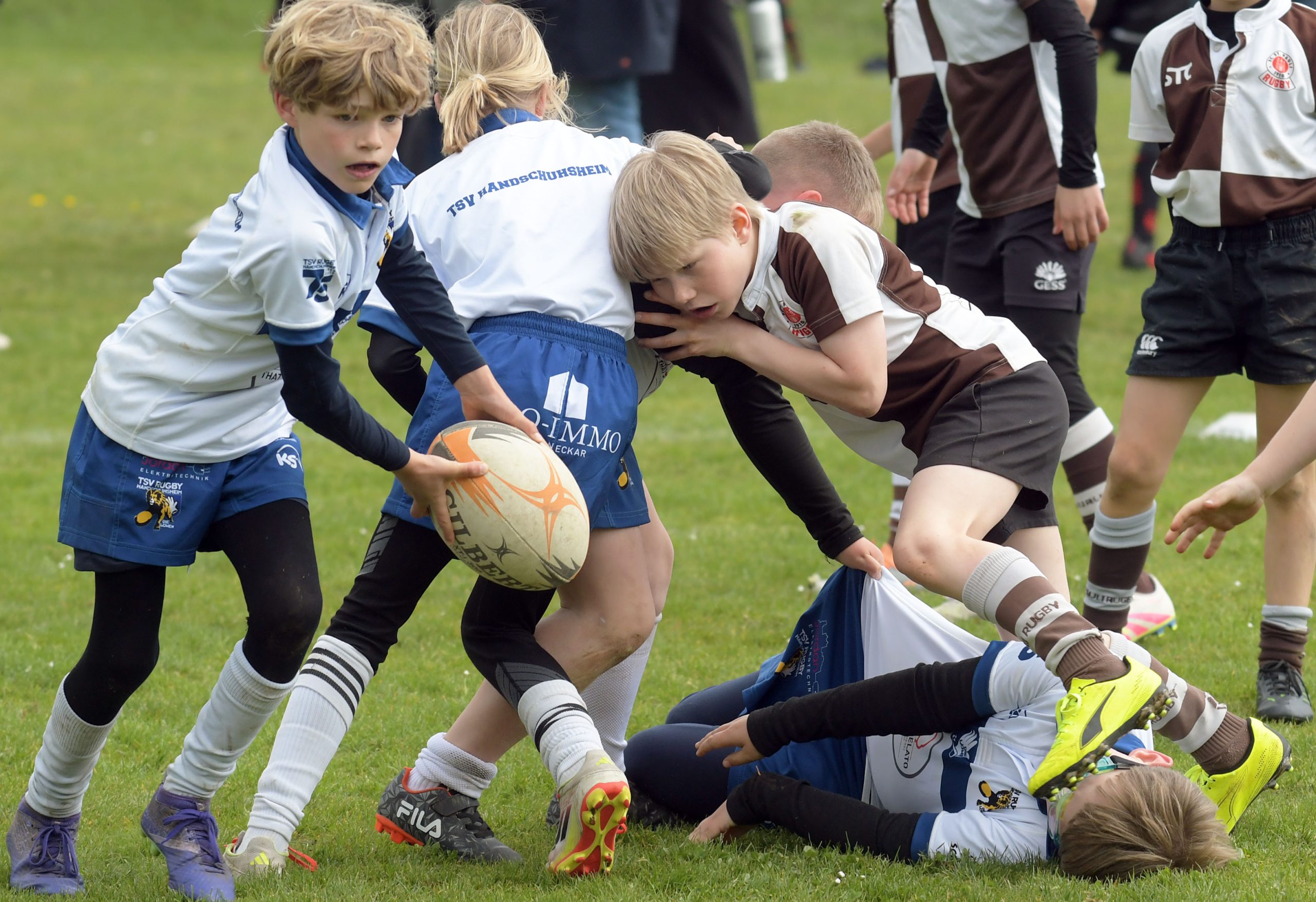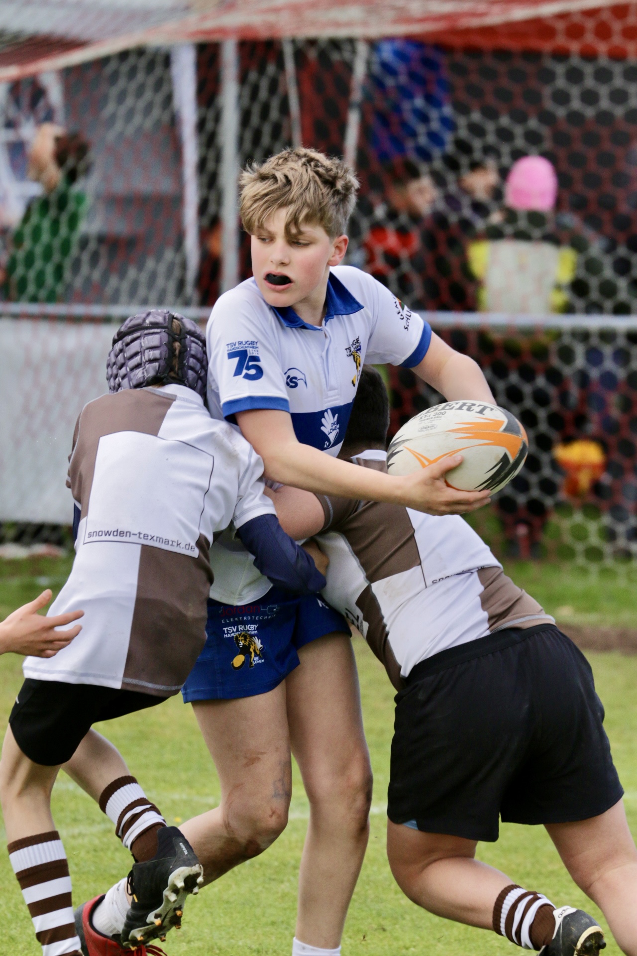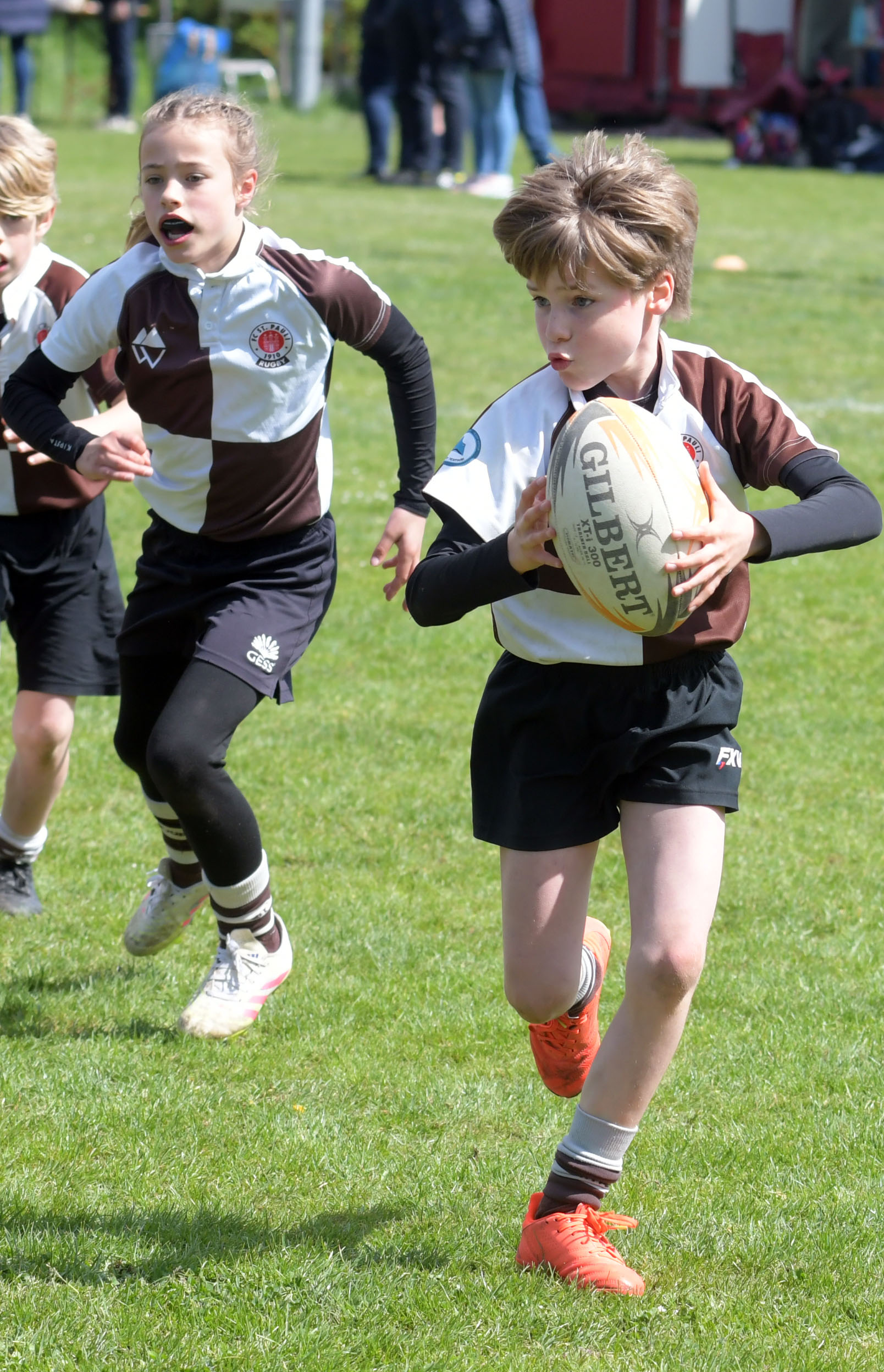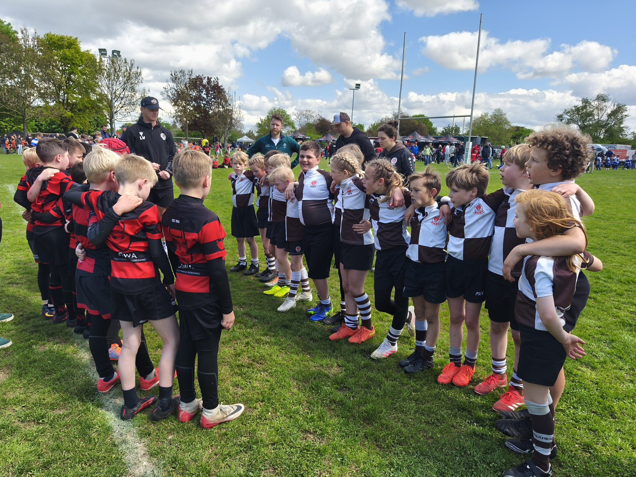 Neben dem „Tour-Feeling“ sind solche Reisen natürlich auch immer ein kleiner Gradmesser, wie man denn so bundesweit sportlich drauf ist, insbesondere wenn so illustre Vereine wie bei dieser Turnierserie am Start sind. Dementsprechend herrschte eine sehr leichte Aufregung und nochmehr Freude auf den ersten Anpfiff. Der kam und unsere Kids zeigten sich an diesem Tag von Anfang an ausgeschlafen. Beide Mannschaften, wirklich alle Spielerinnen und Spieler hauten in den je fünf Spielen alles raus was ging und spielten teilweise ein sehr beeindruckendes Rugby, gegen sehr starke Gegner. Ganz viele Sachen klappten super, die Kids passten, tackelten und rannten und waren knallhart sich selbst und allen anderen gegenüber. So stand am Ende ein sehr schöner Rugbytag zu Buche, an dem die U10 ungeschlagen blieb und insgesamt nur 6 Versuche zuließ. Die U12 zog zwar zwei von fünf Malen den Kürzeren, legte aber in den fünf spielen dafür aller Ehren wert 19 Versuche.