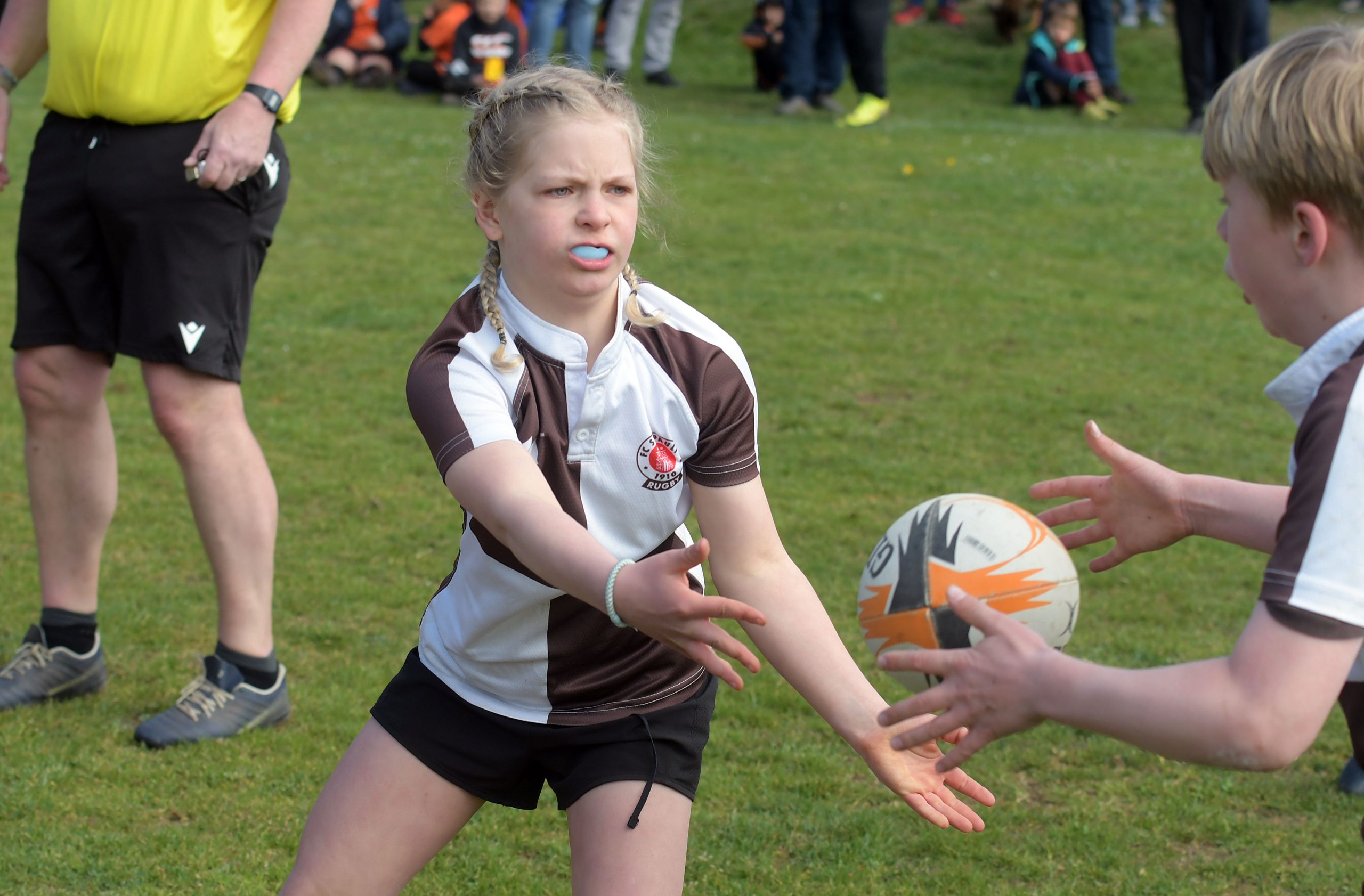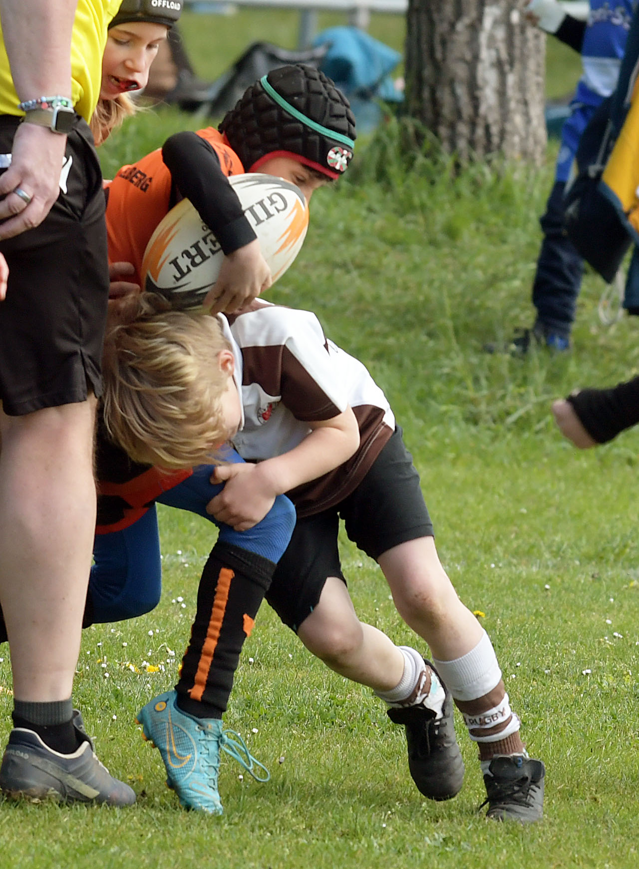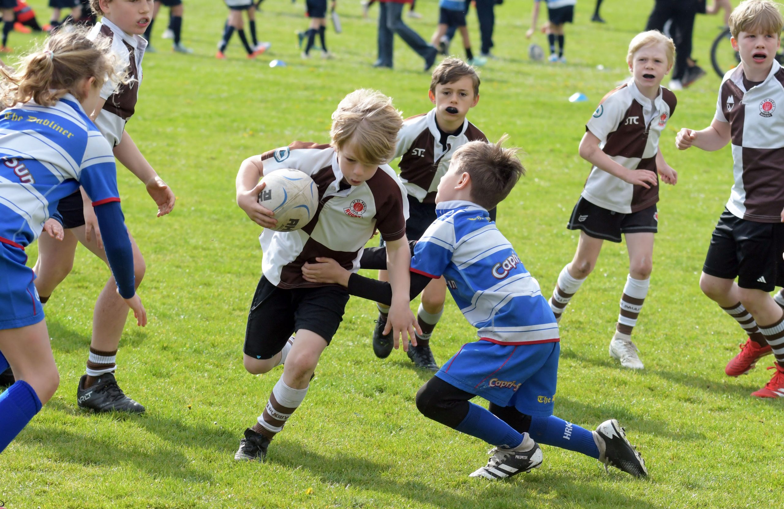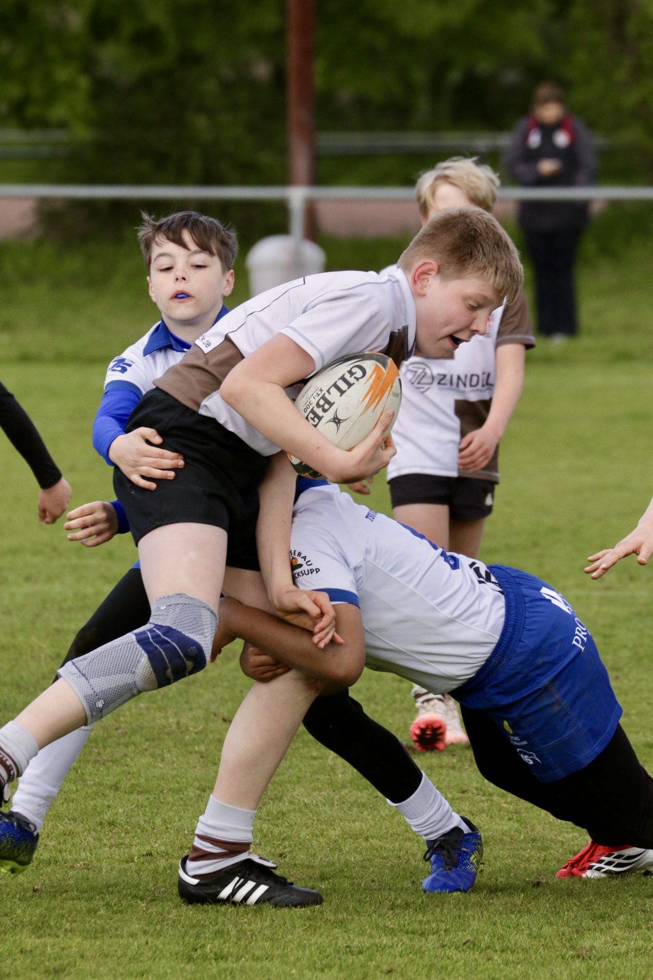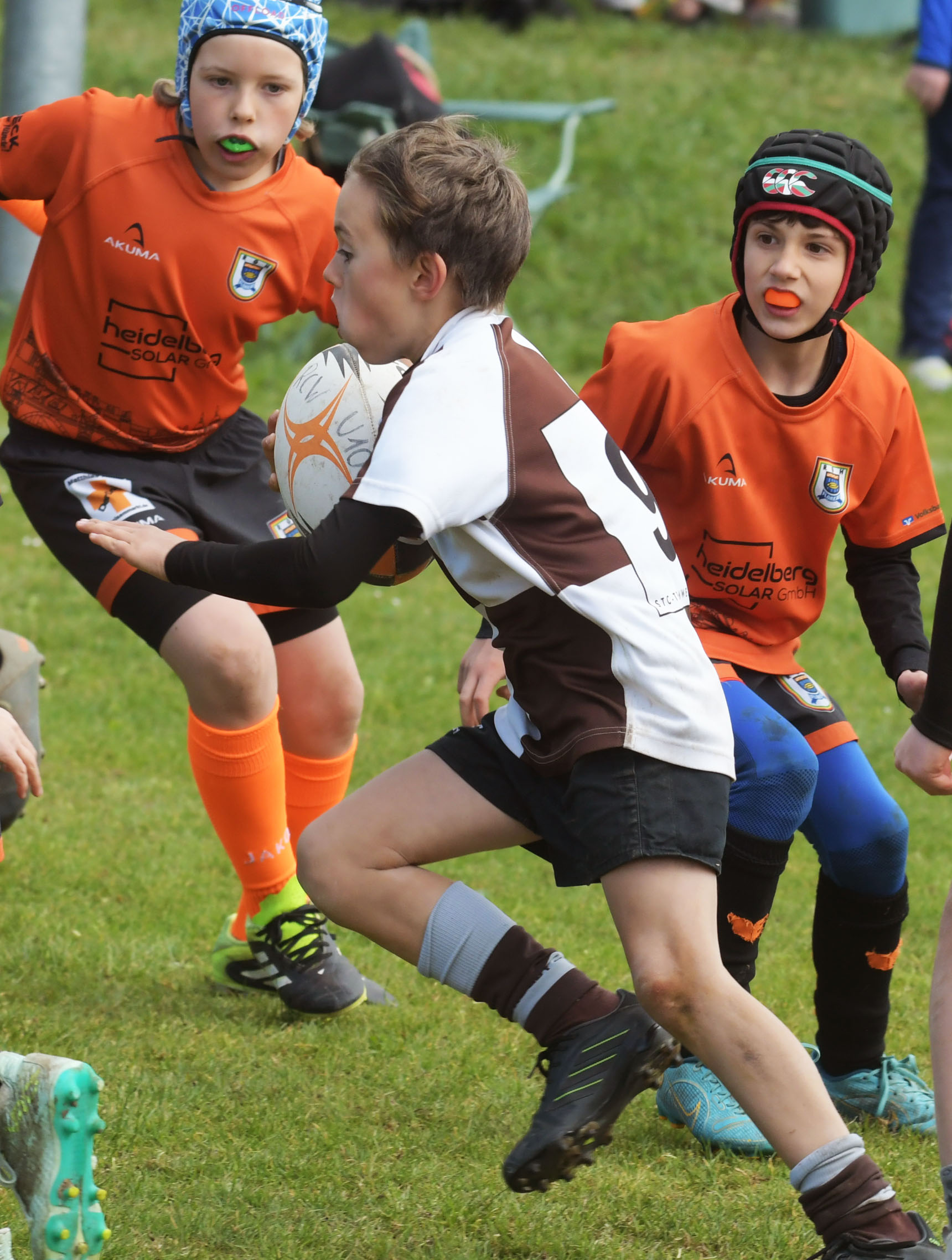 Neben dem „Tour-Feeling“ sind solche Reisen natürlich auch immer ein kleiner Gradmesser, wie man denn so bundesweit sportlich drauf ist, insbesondere wenn so illustre Vereine wie bei dieser Turnierserie am Start sind. Dementsprechend herrschte eine sehr leichte Aufregung und nochmehr Freude auf den ersten Anpfiff. Der kam und unsere Kids zeigten sich an diesem Tag von Anfang an ausgeschlafen. Beide Mannschaften, wirklich alle Spielerinnen und Spieler hauten in den je fünf Spielen alles raus was ging und spielten teilweise ein sehr beeindruckendes Rugby, gegen sehr starke Gegner. Ganz viele Sachen klappten super, die Kids passten, tackelten und rannten und waren knallhart sich selbst und allen anderen gegenüber. So stand am Ende ein sehr schöner Rugbytag zu Buche, an dem die U10 ungeschlagen blieb und insgesamt nur 6 Versuche zuließ. Die U12 zog zwar zwei von fünf Malen den Kürzeren, legte aber in den fünf spielen dafür aller Ehren wert 19 Versuche.