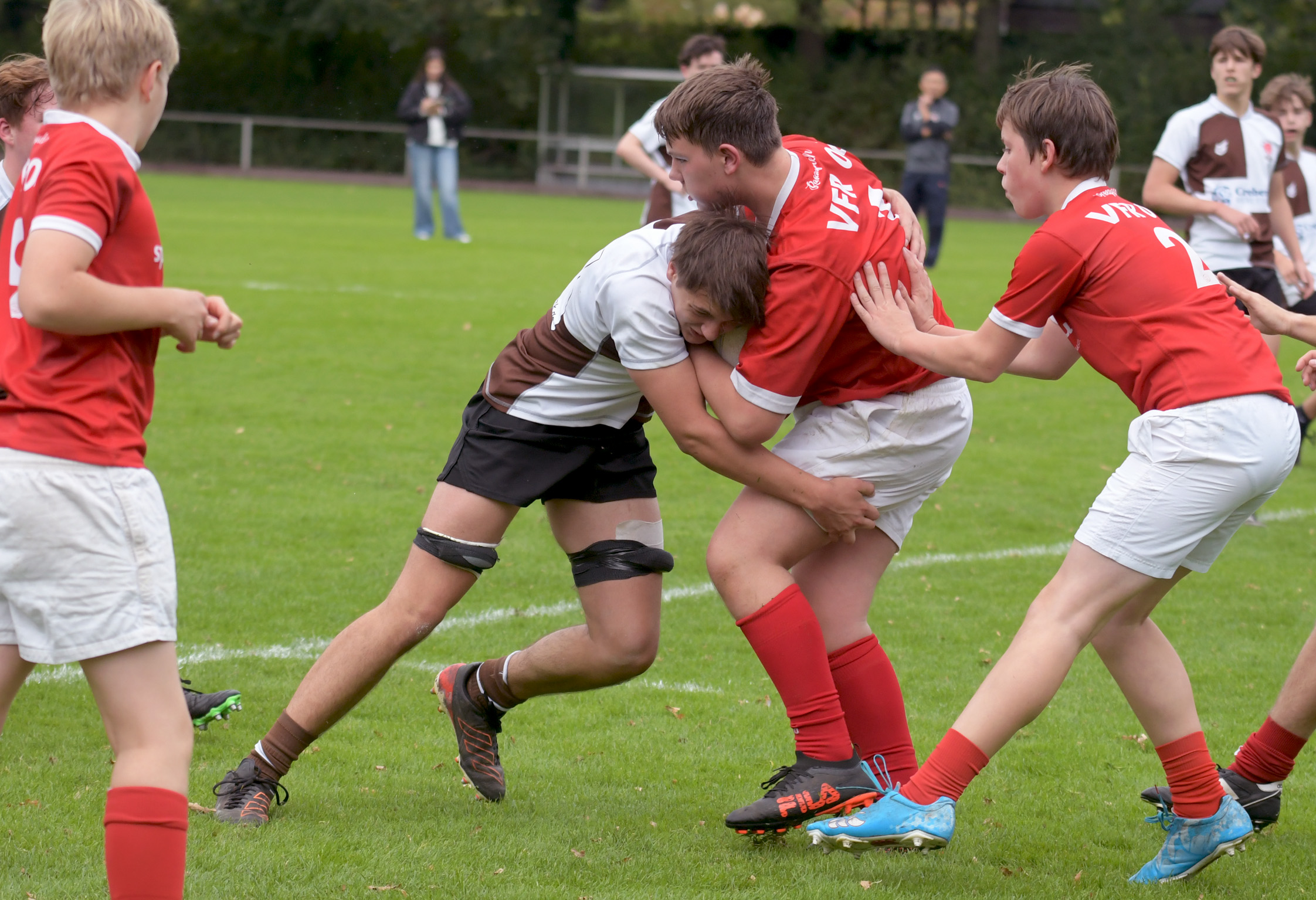 Endergebnis: 17:21, in einem spannenden und schönem Spiel beider Mannschaften, dass die Hannoveraner in letzter Minute für sich entscheiden konnten. Am Ende durften unsere Jungs dann aber sehr zu Recht stolz auf sich sein. Man of the Match: Joshua (N7), dessen körperlicher Einsatz mal wieder ganz erstaunlich war. Die großen Protagonisten waren jedoch die Neuen, die noch nie Rugby gespielt hatten und ihren ersten Auftritt insgesamt, aber auch in der U16 hatten. Herzlichen Glückwunsch dazu!